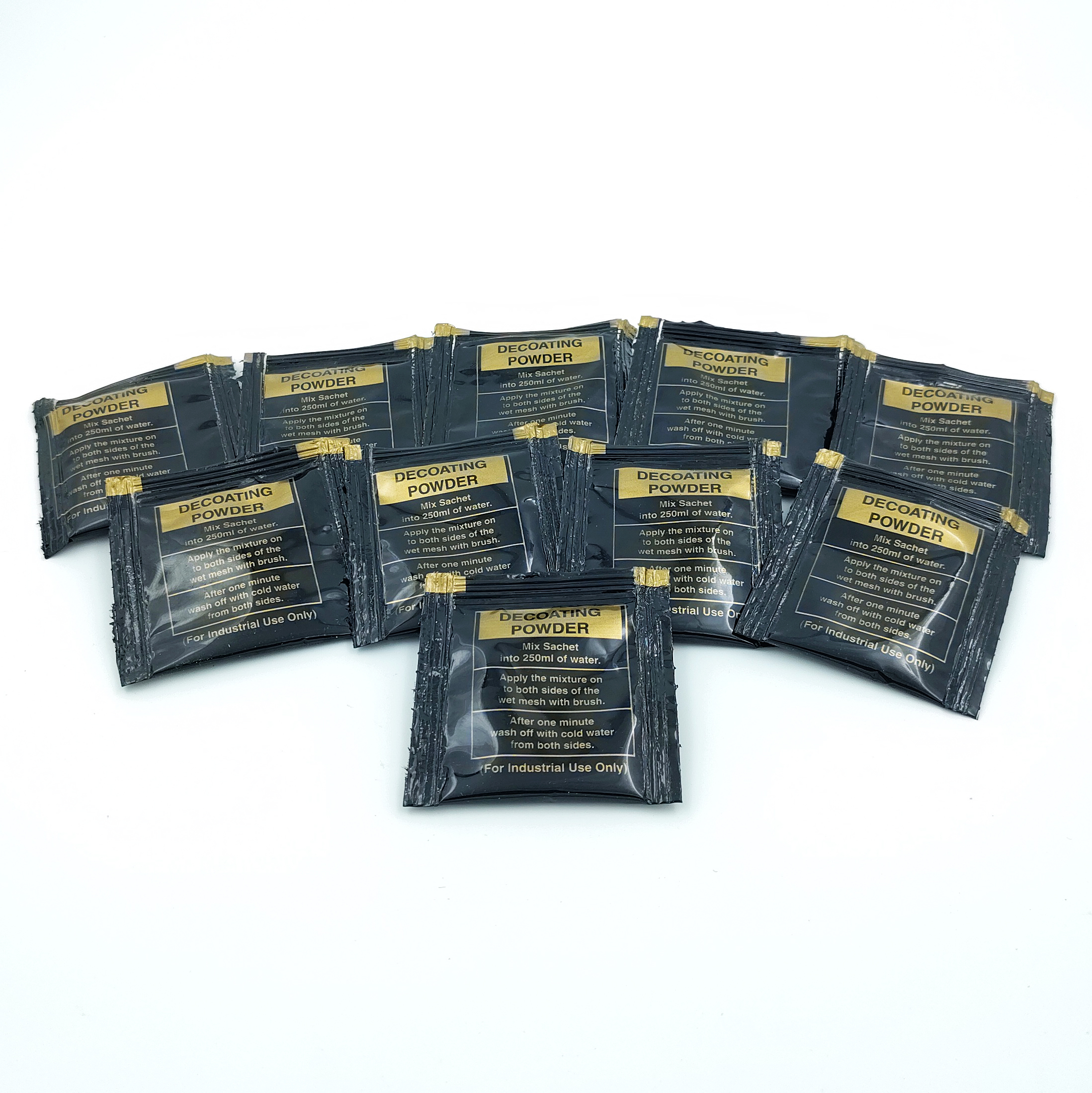 decoating powder sachets, screen printing decoating powder, decoating powder 5gm pack of 10, emulsion remover for screen printing, screen reclaiming chemicals, decoating powder India, screen cleaning powder sachets, screen printing accessories.