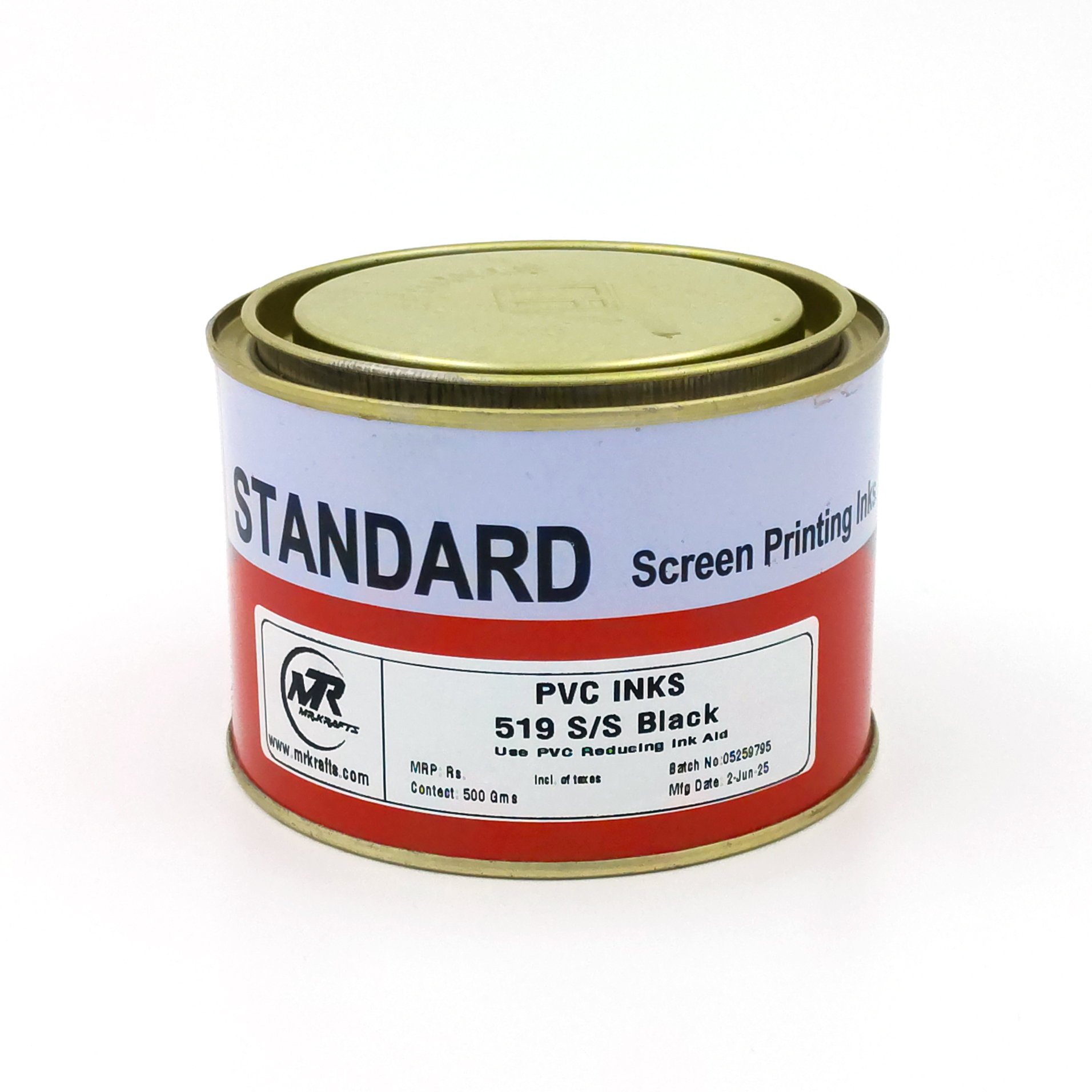 Search Keywords : PVC black ink for screen printing, 500g screen printing ink, black ink for PVC printing, synthetic fabric printing ink, MR brand PVC ink, screen printing supplies India, plastic surface ink, quick dry screen ink, 519 S/S black ink